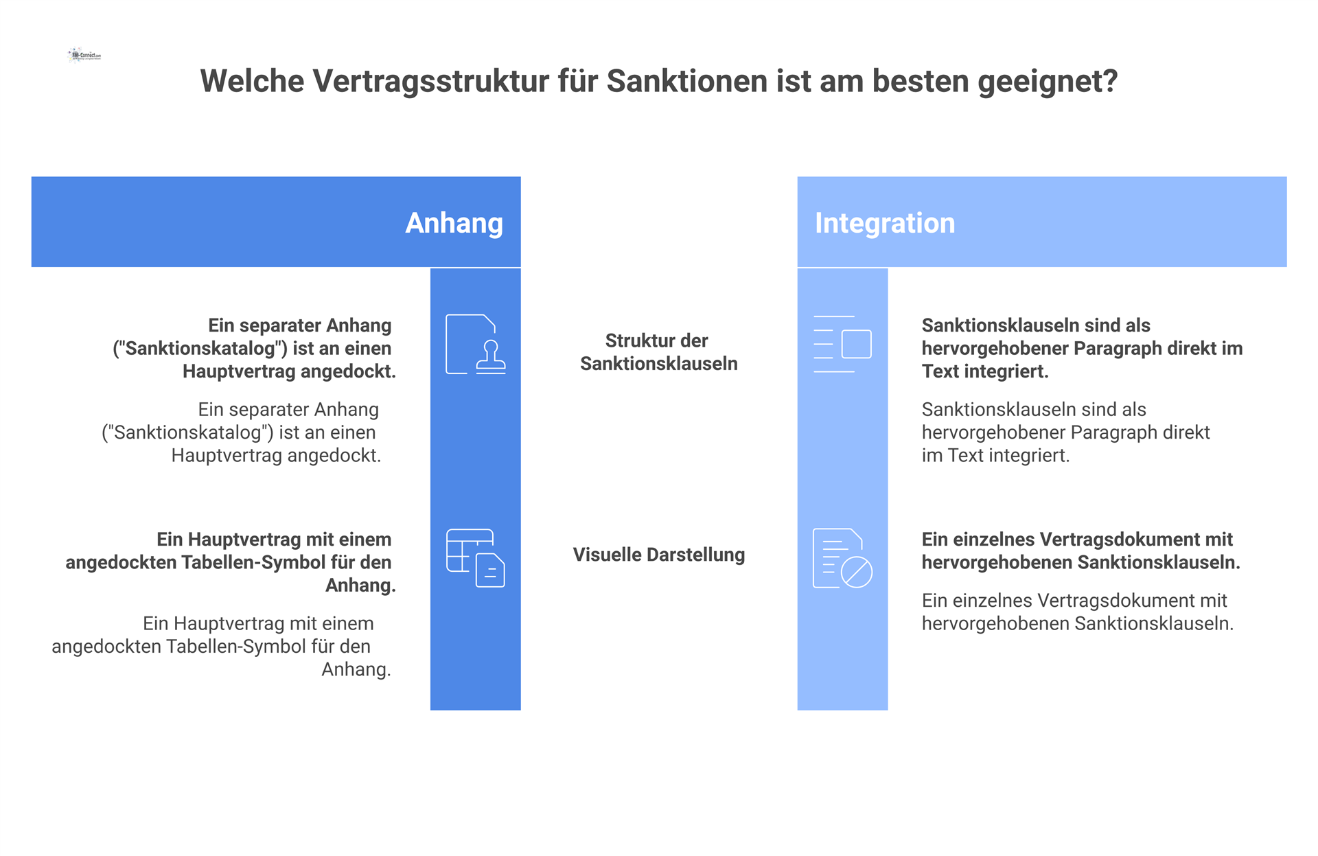 Wie und wo Sanktionsregelungen im Vertrag verankert werden, kann unterschiedlich erfolgen.