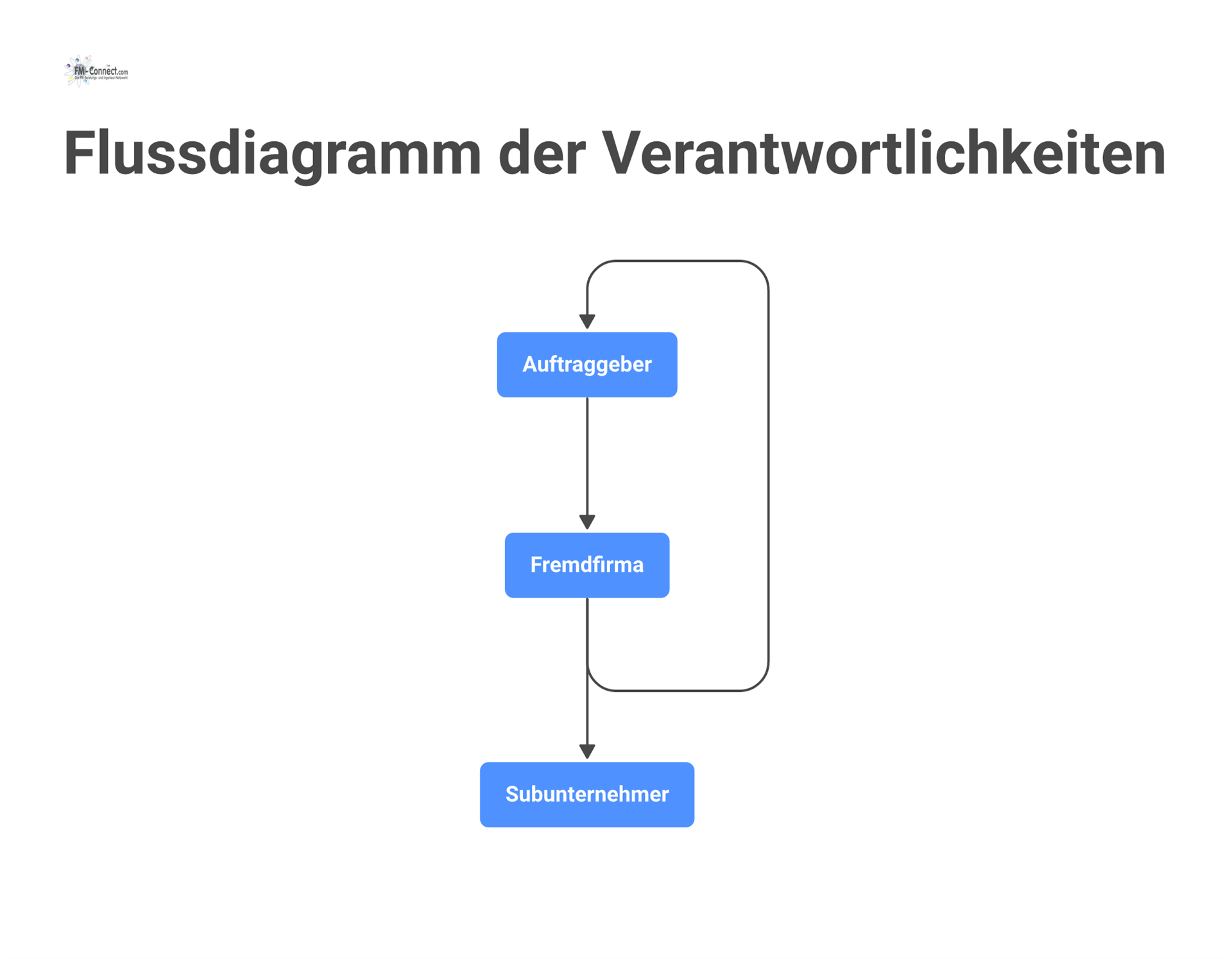 Primäre Verantwortung der Fremdfirma: Die Fremdfirma trägt die Verantwortung für die ordnungsgemäße Durchführung der Arbeiten und die Sicherheit ihrer Beschäftigten. Sie organisiert ihre Leistung selbst und setzt eigenes Personal ein, das ihren Weisungen unterliegt. Der Auftraggeber bleibt für seine eigenen Mitarbeiter und Betriebsbereiche verantwortlich, unterstützt jedoch die Fremdfirma durch Informationen über Betriebsgefahren und durch Koordination, wo nötig. Klar gestellt wird, dass kein Arbeitsverhältnis zwischen Auftraggeber und Mitarbeitern der Fremdfirma besteht – Weisungen erteilt die Fremdfirma eigenständig (ausgenommen dringende Gefahrenabwehr).